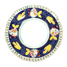 *紺地に口元がチャームな金魚(フグ?)のようなサカナの柄、